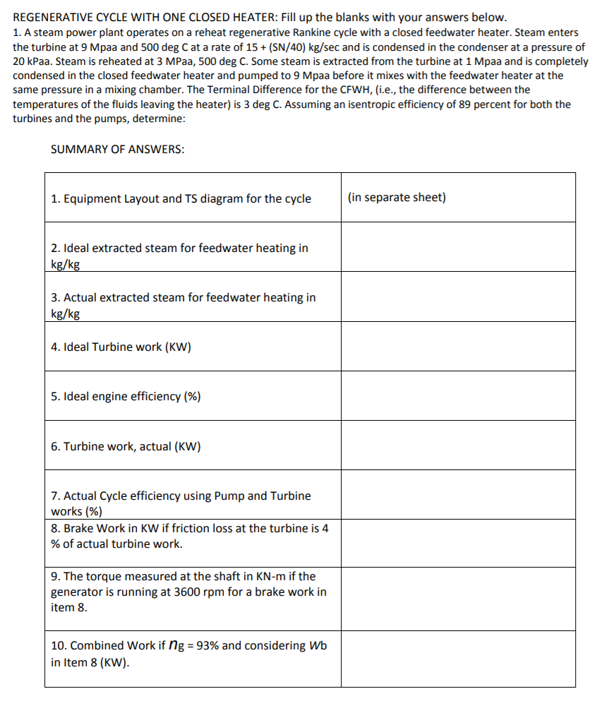 Solved Regenerative Cycle With One Closed Heater Fill Up Chegg Com